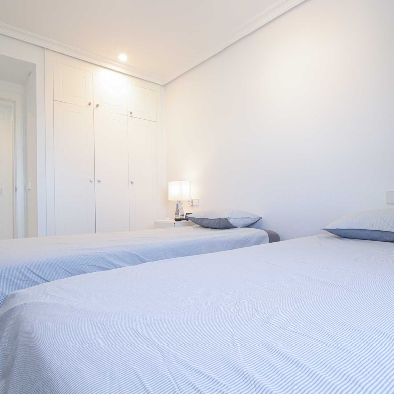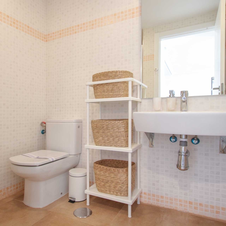 The main floor features a fully fitted kitchen, a spacious living room, a comfortable bedroom, and a modern bathroom. The highlight of this floor is the expansive terrace, which offers panoramic views of the Mediterranean Sea, Gibraltar, Morocco, and the beautifully landscaped urbanization garden with its inviting swimming pool.
